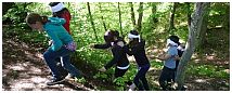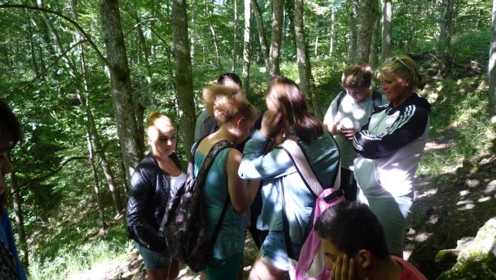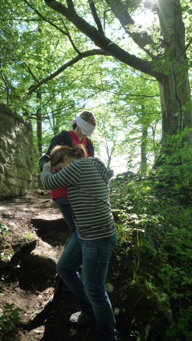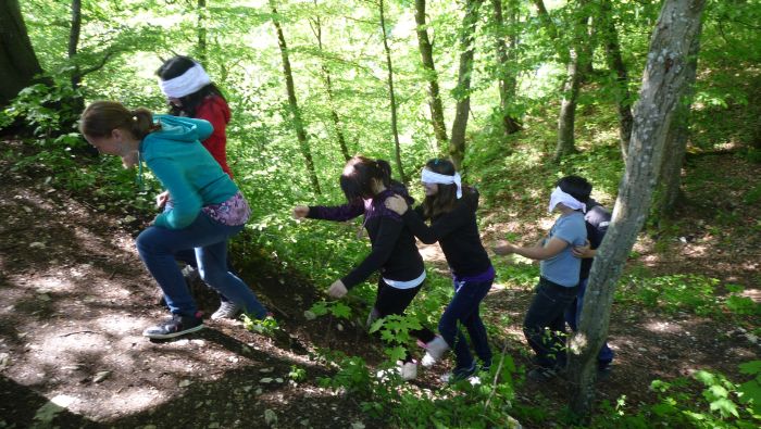 Die Schüler/innen erstellen Mandalas aus im Wald zu findenden Naturmaterialien, bauen eine Schutzhütte aus Ästen, einen Staudamm am Bach, lernen den Geräuschen im Wald zu lauschen, ertasten blind verschiedene Baumstämme.