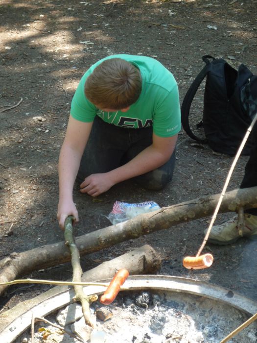 Einmal im Jahr wird mit einer Klassenstufe ein Waldtag veranstaltet. Dabei fällen wir einen Baum, dieser wird danach mit einem Schäleisen entrindet, mit der Handsäge in handliche Stücke zersägt und abtransportiert.