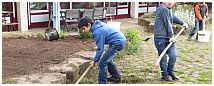 In unserem Schulgarten können die Kinder die Natur mit allen Sinnen erleben. Im Rahmen der Garten-AG werden die Beete gepflegt und Gemüse angebaut.