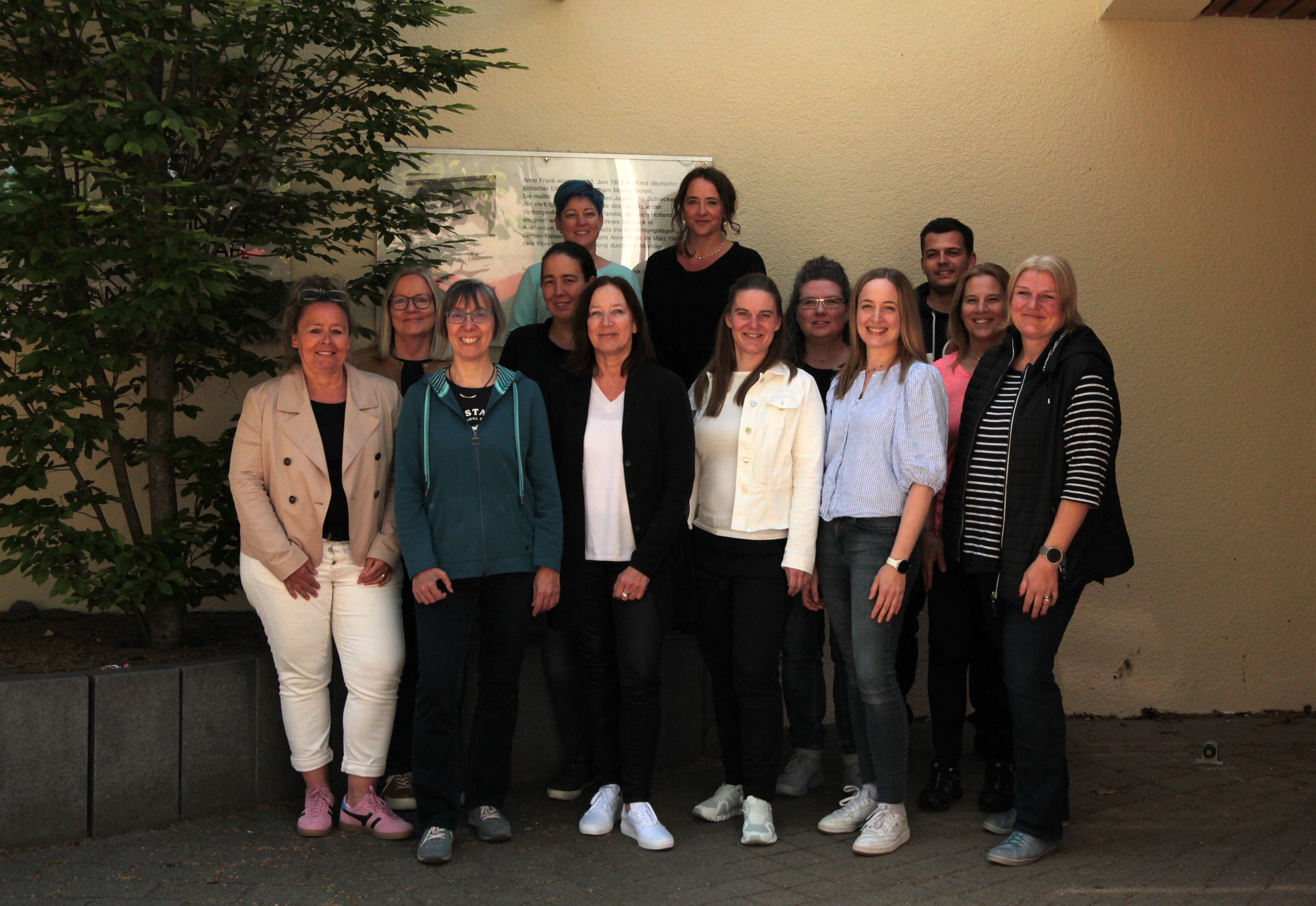 Derzeit unterrichten 12 Kolleginnen und Kollegen an der Anne-Frank-Schule und in inklusiven Settings umliegender Schulen. Unterstützt werden sie durch eine FSJlerin.
