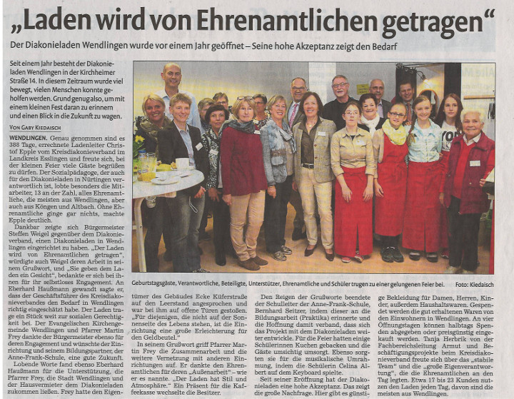 Unser Bildungspartner hat im Diakonieladen in Wendlingen sein einjähriges Jubiläum gefeiert. Wir konnten mit Kuchen und einem Musikbeitrag zum Gelingen der Veranstlatung beitragen.