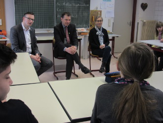 Herr Kenner informierte sich über die Arbeit an der AFS. Anwesend war auch unser Bürgermeister Hr. Weigel. Abschließend gab es ein sehr interessanntes Gespräch zwischen den Schülern der H2 und H3 und Hr. Kenner.