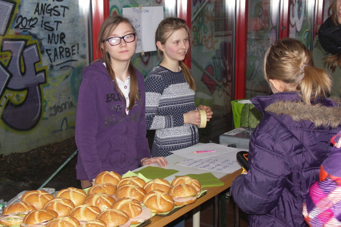 Die Schülerinnen und Schüler der H2 haben zusammen mit unserer FSJ-lerin ein leckeres Pausenvesper gebacken. Die Schnecken sind beinahe schon ausverkauft.